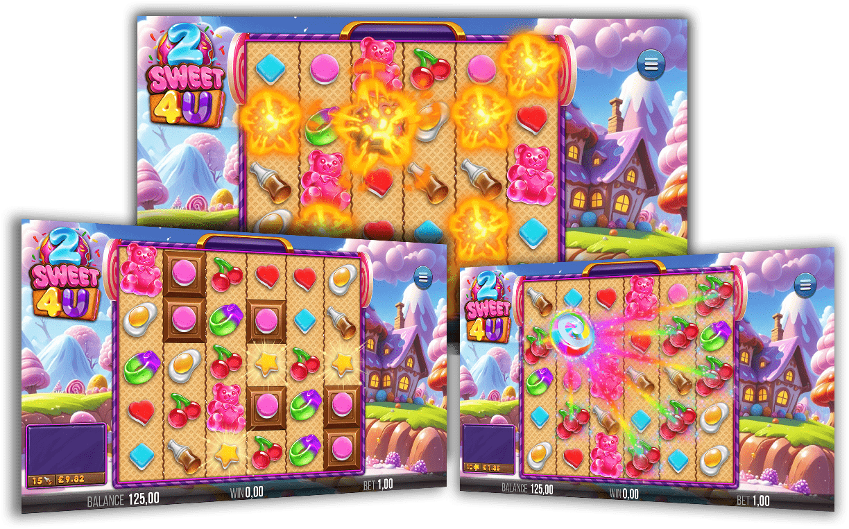2 Sweet 4 U slot from 4ThePlayer offers a sugary escape into a world of sweets and candies with its vibrant 6-5 layout. Featuring a Pay Anywhere mechanic, the game stands out with exciting features like Avalanche, Free Spins, and Multiplier boosts.