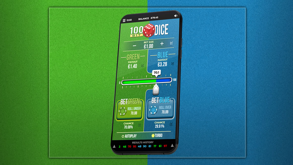 Bet on the outcome of a dice 0 – 100, will it be under or over your choice? Easily configure your bet and potential payouts using the simple slider or bet editors. No complicated table layouts or confusing cards, just a simple bet Green or Blue??