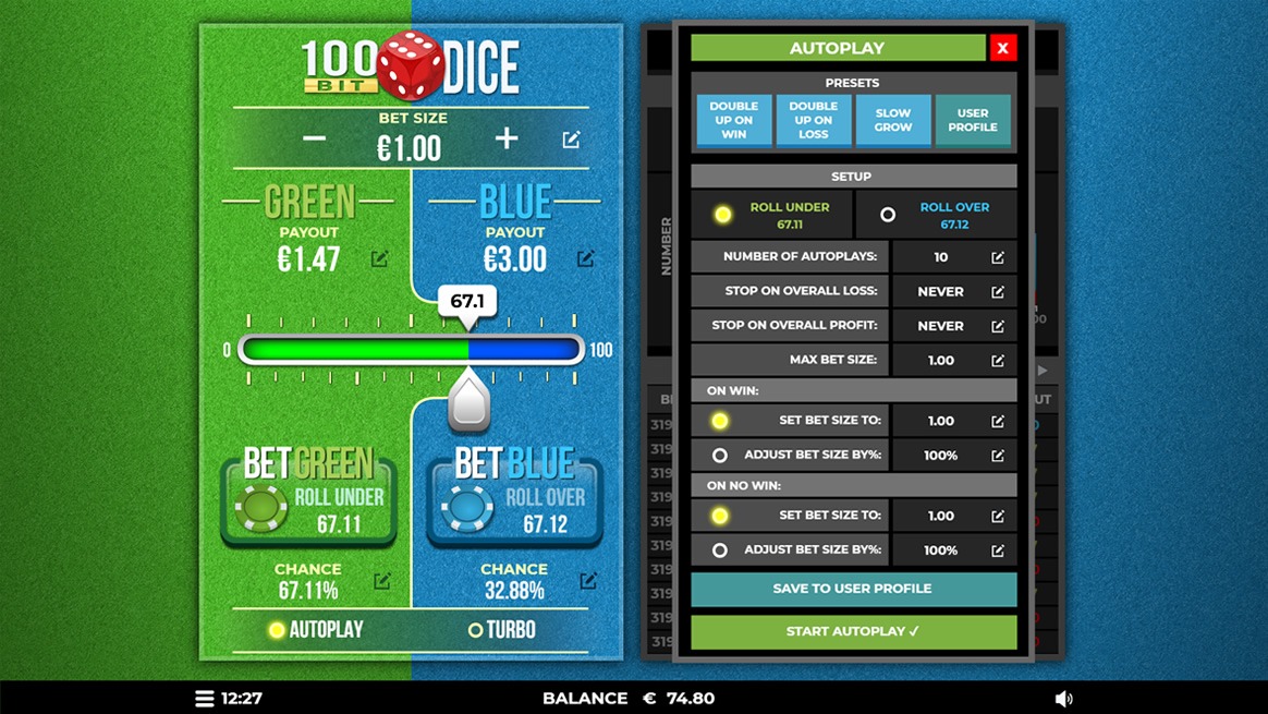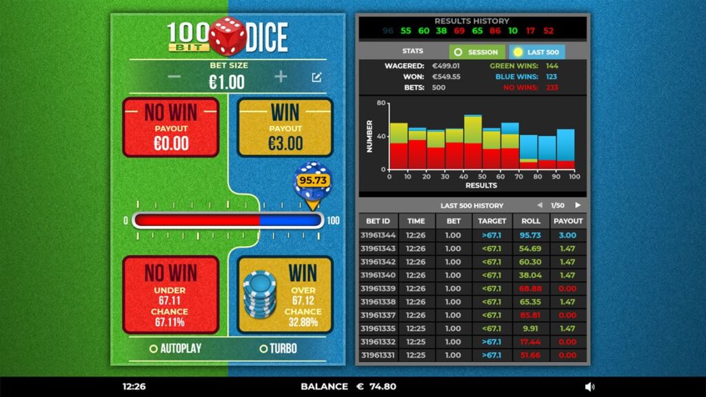LET THE GOOD TIMES ROLL IN WITH 100 BIT DICE!