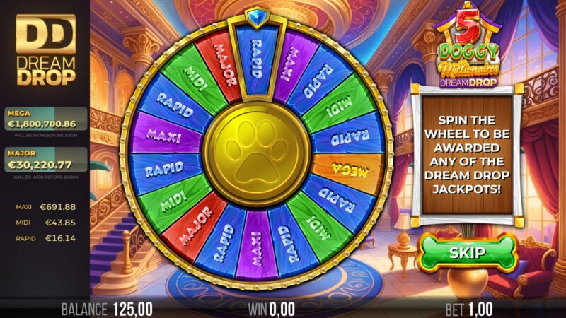 This sequel to the super successful 5 DOGGY DOLLARS features Relax's DREAM DROP JACKPOT System! Spin for 1 of 5 amazing jackpots on the Fortune Wheel: MEGA, MAJOR, MAXI, MIDI, and RAPID!