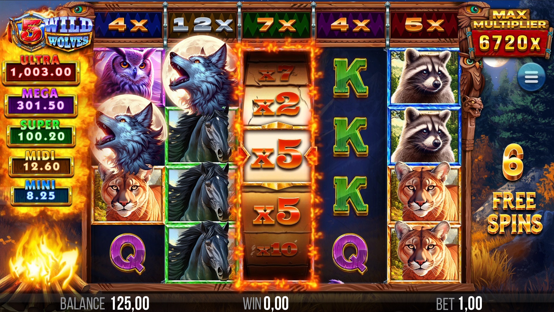 5 Wild Wolves Multiplier Screenshot
