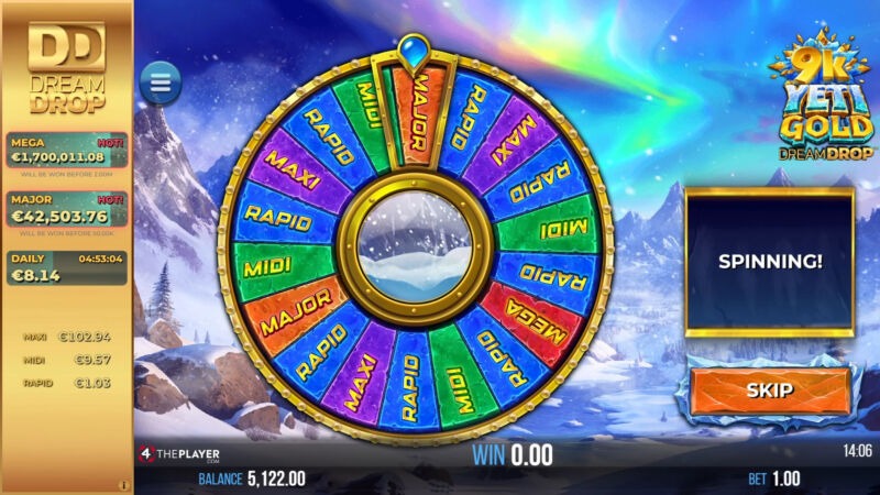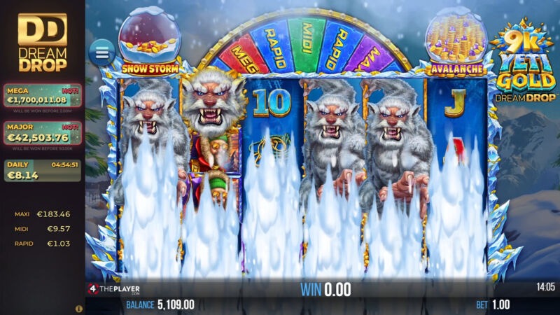 Reexperience mountainous wins in 9K YETI GOLD DREAM DROP, the fully updated reimagining of 4ThePlayer's player favourite classic! Featuring 4,096 ways to win, Relax's Dream Drop jackpot system, Free Spins, and 2 all-new in-reel bonuses!